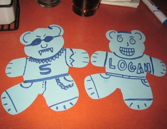 On Friday we had dinner at Boston Pizza. They were raising money for the children's hospital and Miranda, Scott and I got to decorate the bears.