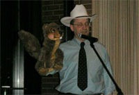 Last night we attended Scott's Christmas party... at the Coast Terrace Inn, and YES, I went shopping while at the party. He sent me to the gift shopping to get batteries and on a drunken whim I bought a PUSSY CAT! First I was going to get a squirrel, as a reminder of Bob Layton and his squirrel singing: