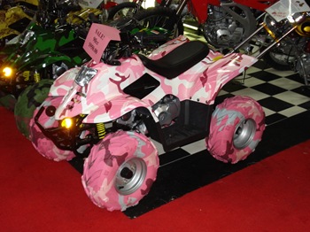 At this years Motorcycle Show, there were some cute pink bikes in the merchandise hall. The Quad is awesome! (I wonder if they make it in an adult size, as this one was a mini-quad)