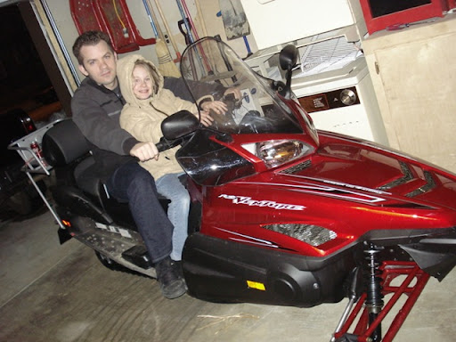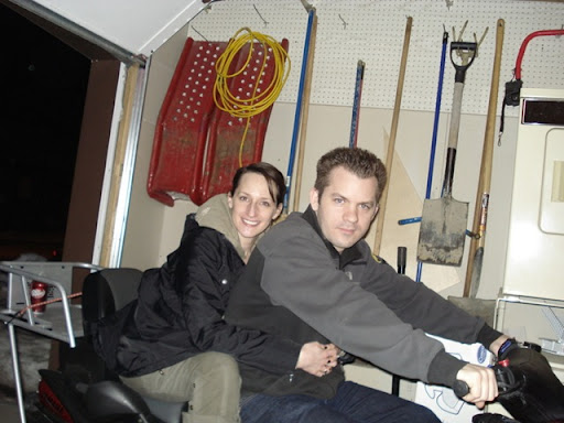It's not very often that this girl will dream of snow. We still have a lot, but it's melting and is all crusty and icy. So what do we do when we're not out in the snow? We sit in the garage and pretend we're bombing through fields of the powdery white stuff.